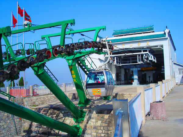 | 湖南武陵源索道有限公司成立于1995年12月7日,武陵源區(qū)人民政府和香港安達(dá)國際度假樂園(張家界)有限公司簽約,是由香港安達(dá)國際有限公司投資的外商獨資企業(yè)。1996年6月動工興建天子山索道,1997年5月正式對外營運。天子山索道是單線循環(huán)式脫掛抱索器客運索道,全部設(shè)備自奧地利Doppelmayr公司進口。設(shè)計水平線1960m,斜線長2084m,兩端站高差692m。配單線自動循環(huán)車廂41個,每車廂載6人,運速5m/s,每小時單向運量900人。索道動力電,采用雙電源;配備有應(yīng)急備用柴油機,用于停電或發(fā)生設(shè)備事故時緊急疏散游客。