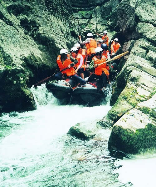 西門峽 西門峽漂流全程6公里,屬萬溶江流域,它發(fā)源于兩頭羊自然保護區(qū)的群山之中;沿途危崖夾峙,樹木蔥榮,水質清澈、急流、險灘星落棋布。共有虎跳澗、白龍灘、臥龍灘、青龍峽、鬼見愁、龍王灘等急流險灘30余個。其中以青龍灘最為著名,它全長400米,落差20余米。它和龍王灘一道堪稱國內漂流之經典。
