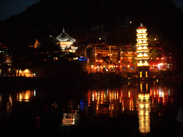 萬(wàn)名塔夜景 為何要修筑這字紙爐,據(jù)說(shuō),乾隆五十年(1876年)古城擴(kuò)建了筆架城以后,形似筆架,故名“筆架城”,有了筆架峰,為培植風(fēng)水,便在沙灣黃土坎江邊修筑字紙爐寶塔一座,象一支筆,與筆架城相對(duì)應(yīng),意欲使鳳凰人文蔚起。