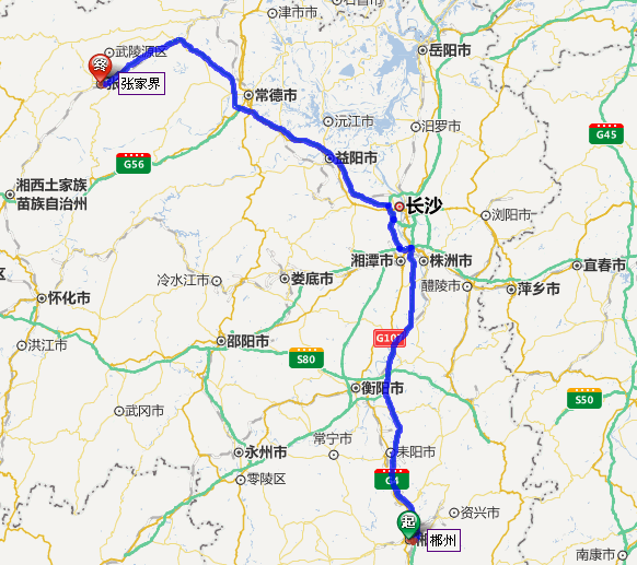 郴州去張家界自駕車線路圖: