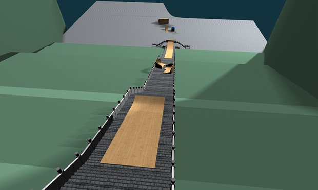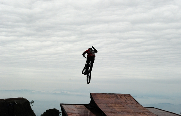 沿用去年的賽制,本屆大賽依舊分速度賽和技巧賽。速度賽的賽道出發(fā)點(diǎn)為天門洞口,選手將俯沖騎行整條天梯,并且全程直線加速,再騰空飛躍跨度超過7米、高差超過4米的跳臺最終騎行至天門洞廣場,時間最短者為勝。技巧賽為選手通過天梯上的加速跳臺起跳,跳臺呈現(xiàn)4.5米弧度仰角,選手會被拋至空中,完成后空翻、超人、神龍擺尾等難度動作,落地后,再通過2米高,跨度超過7米拋臺,空中完成第二次難度動作,裁判將以兩次空中動作難度和落地完成情況為基本項(xiàng)要求評分。